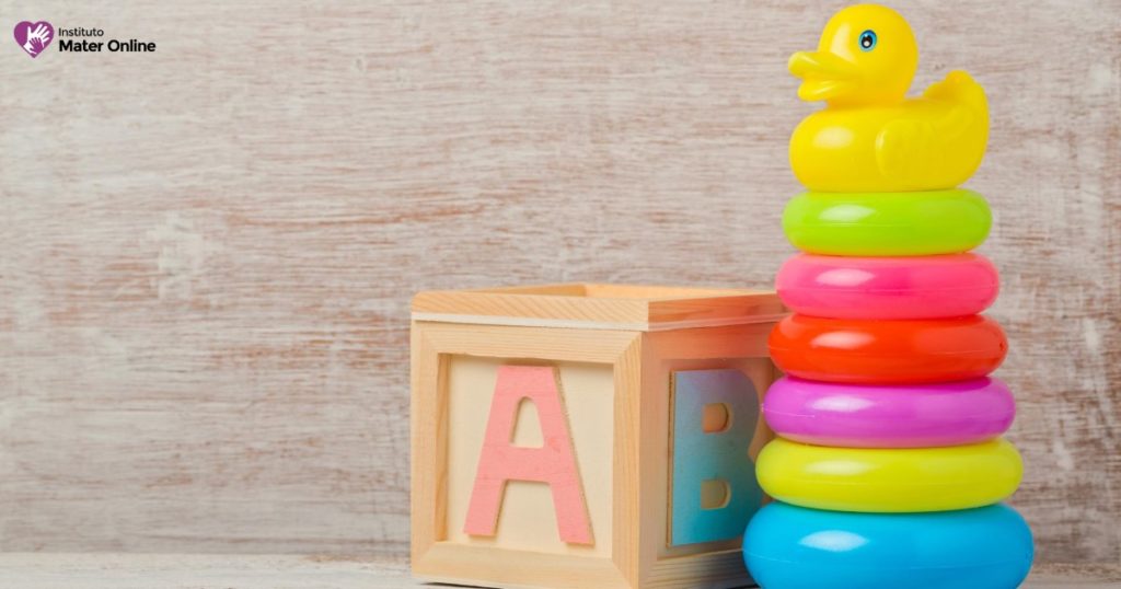 5-6 Meses | Fazem sons balançando objetos sonoros (ex: chocalho) Seguram um cubo, objeto cilíndrico ou esférico |